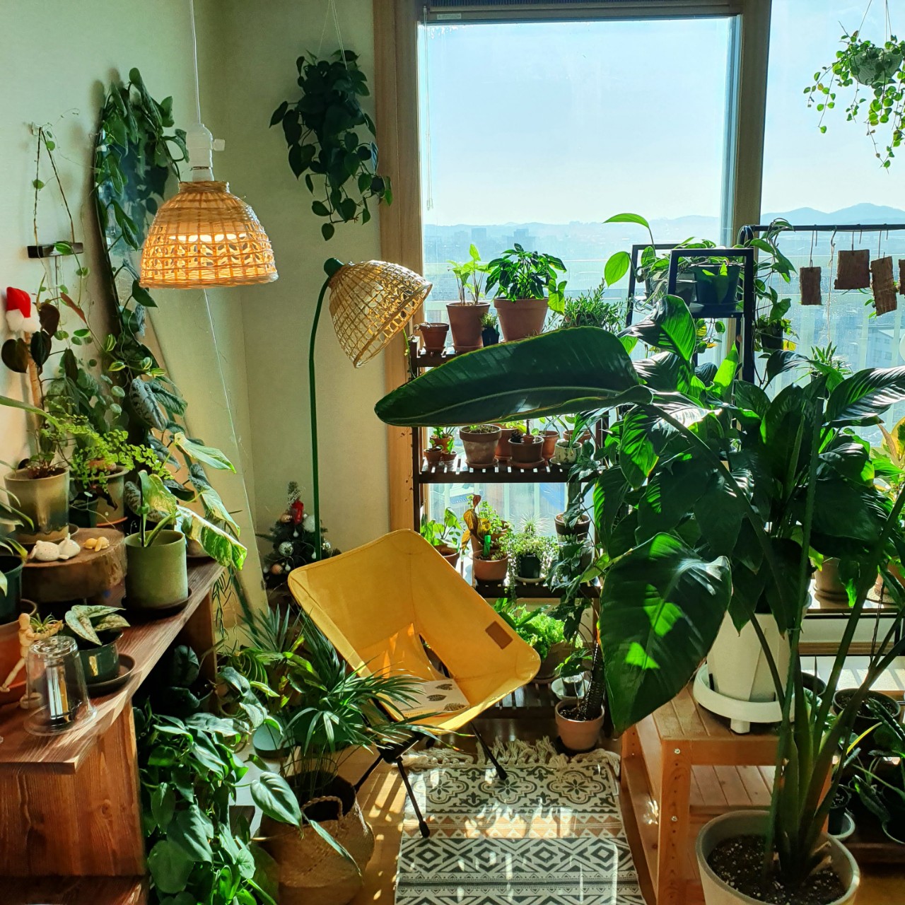 처음엔 식물 10개로 시작했는데, 점점 들이다 보니 어느덧 100개를 훌쩍 넘어섰어요. 식물이 50개 넘어가면서부터는 남편이 “또 샀어?” 물어보더라고요. 그런데 100개 넘어가면서부터는 그냥 포기한 것 같아요. 뭘 하나 더 들여도 남편이 못 알아봐요. 그래서 더 맘 놓고 쇼핑하는 면도 있죠. 제가 하는 홈 가드닝 인스타그램과 유튜브가 활성화 되고 나서는 더 열심히 해보라며 응원해줘요.
