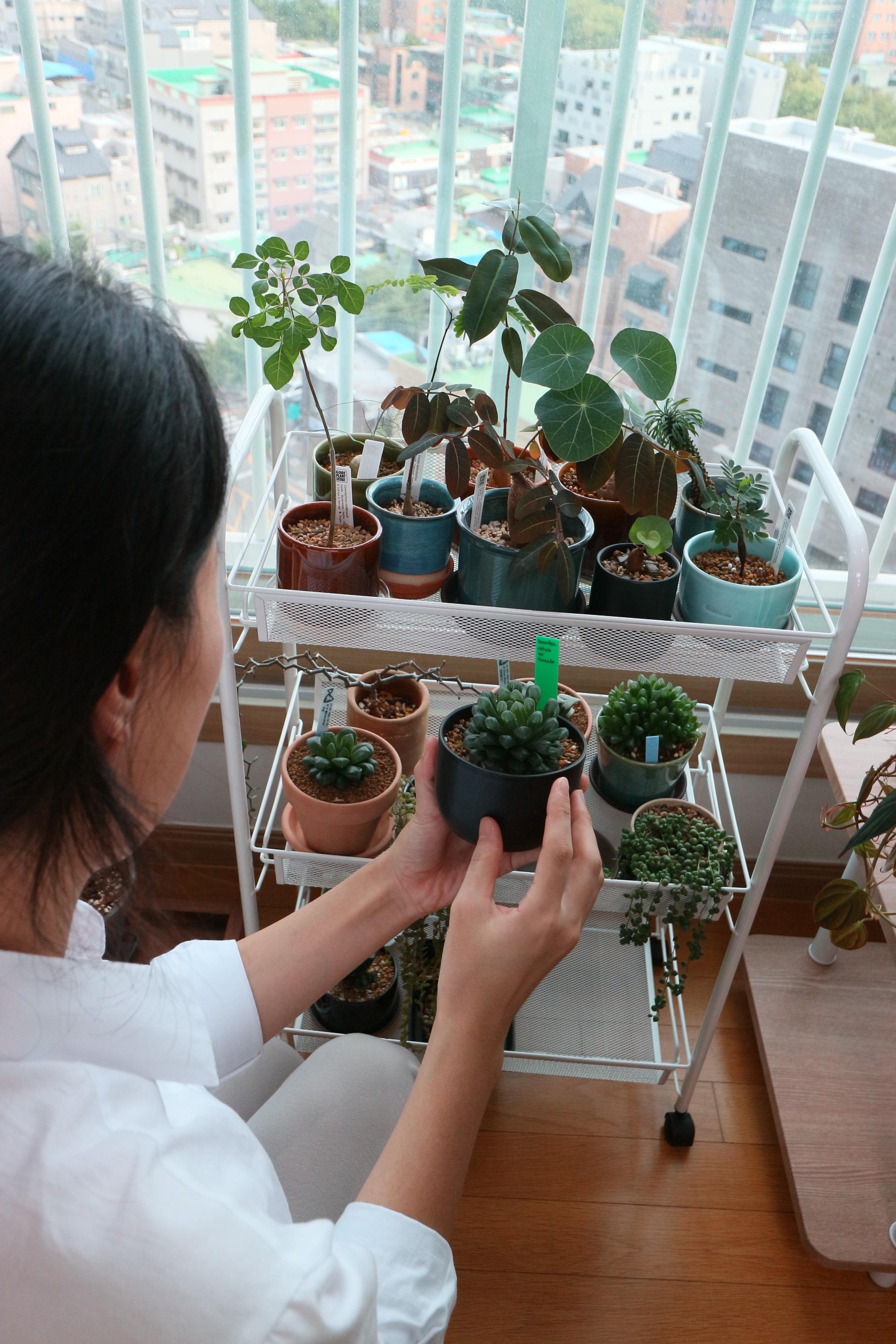 회사에 다니면서 스트레스를 많이 받았어요. 성취감도 없었고요. 식물은 그렇지 않거든요. 제가 정성을 쏟으면 쏟은 대로 성장하고 예뻐지니까요. 식물 돌보면서 성취감도 느끼고 스트레스가 풀렸어요. 식물 키우는 데 너무 손이 많이 가지 않냐는 말도 듣는데, 좋아서 하는 일이어서 즐겁기만 해요.