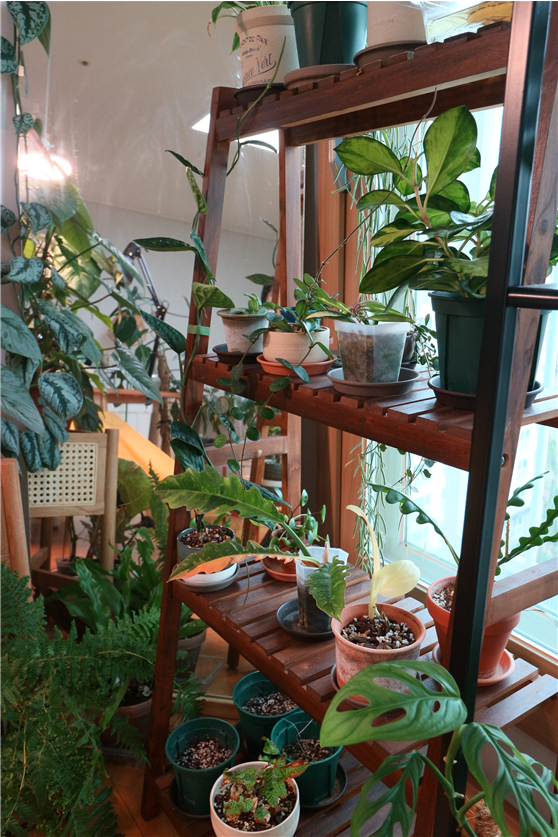 “ 식물 방은 저만의 휴식공간이에요. 식물방에 들어서면 따뜻하고 습한, 화원 냄새가 나요. 원래 퇴근하고 집에 오면 주로 TV, 유튜브를 많이 봤는데 지금은 식물 방에서 식물 돌보는 시간이 훨씬 길어요. ” |