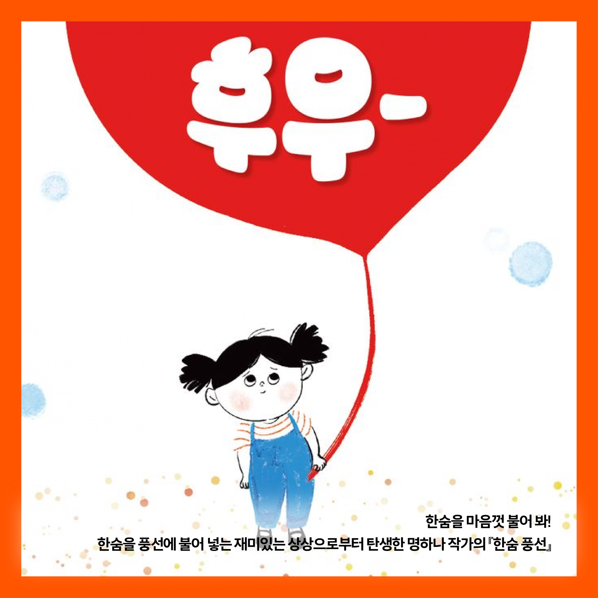 『한숨 풍선』은 로은이에게 한숨 친구를 만나게 해 주었다. 풍선을 불면서도 좋고, 노래를 크게 부르면서도, 쌩쌩 자전거를 타면서도 좋다. 나만의 한숨 풍선으로 깊은 한숨을 힘껏 내뱉다 보면 속상한 마음쯤이야 한 손가락으로 퉁 튕겨 내 버릴 만큼 조그매져 있을 것이다. 아직 나만의 한숨 풍선을 찾지 못했어도 괜찮다. 로은이에게 한숨 풍선을 건네준 가게 사장님처럼 『한숨 풍선』이 또 다른 한숨 풍선을 선사해 줄지도 모른다.