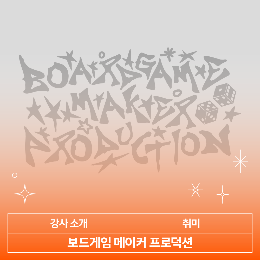 | 소개 | 플레이어에서 작가로! 실제 판매까지 이어지는 보드게임 작가 양성 과정 |