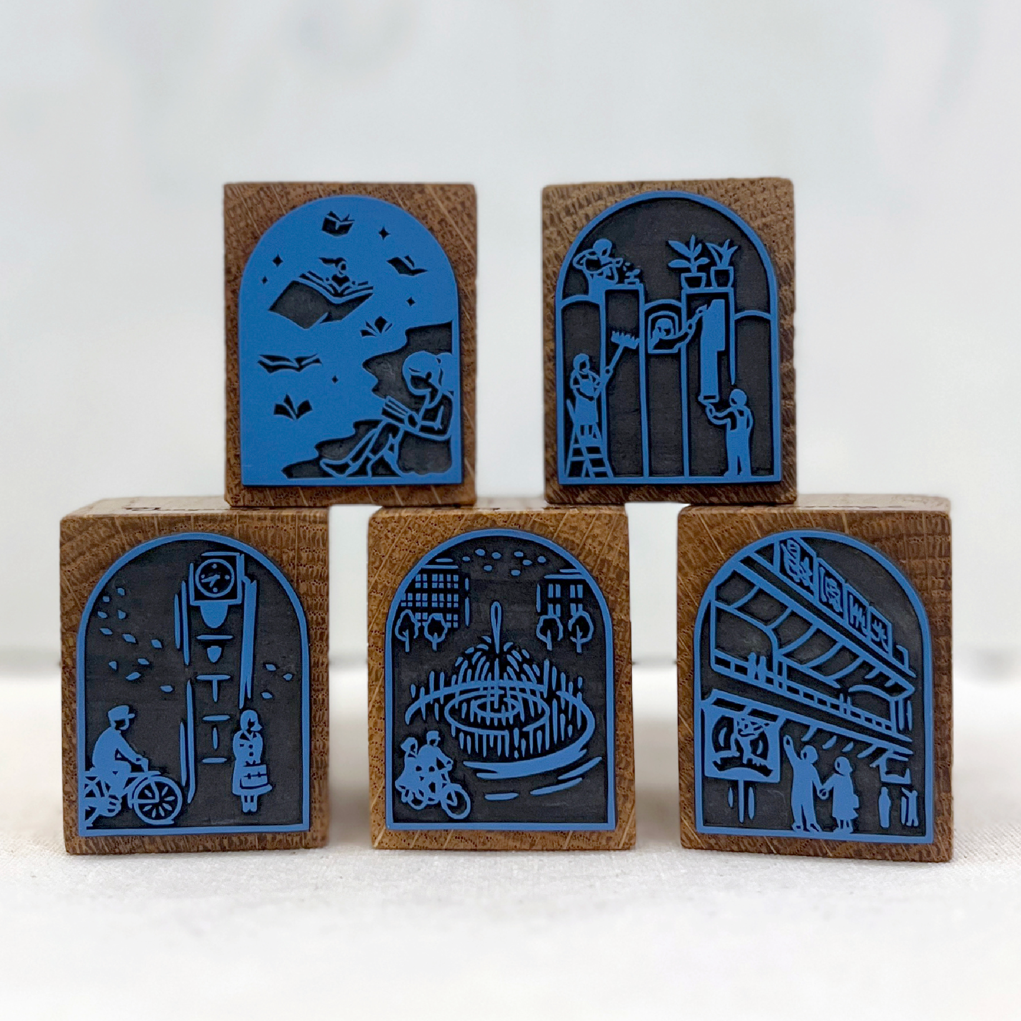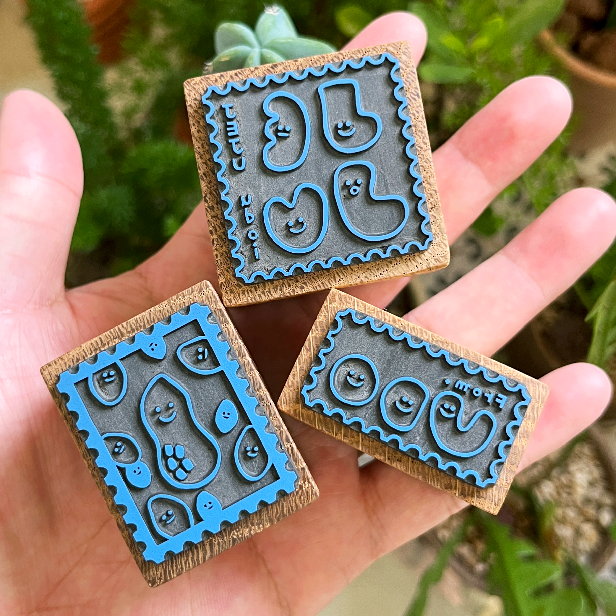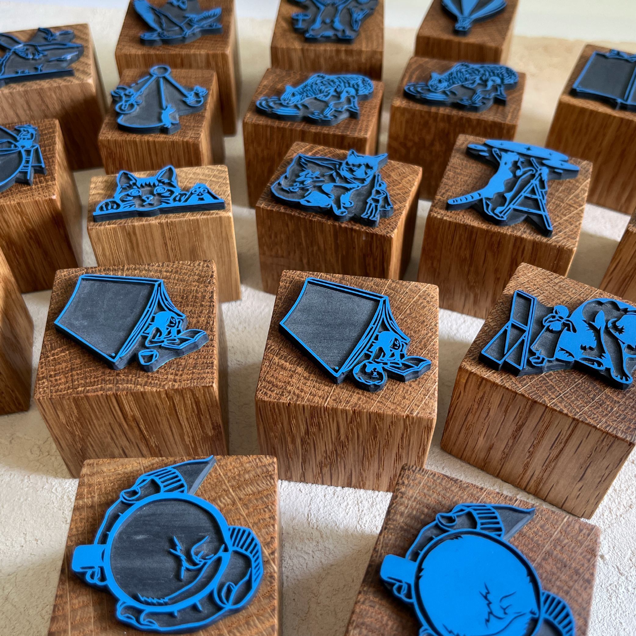 보다 더 완성도 있는 도장을 만들 수 있도록 나만의 도장 제작 전, 두 번의 연습 과정을 거칩니다. 먼저 단순한 형태의 집 모양을 만들고, 선생님의 35가지 예제 중 하나를 골라 도장 제작 과정을 연마합니다. 이 과정이 조금 익숙해졌을 때쯤, 내가 만들고 싶었던 도안을 도장으로 완성합니다. 나중에 좀 더 복잡한 그림도 만들어 볼 수 있도록 선생님이 그간 쌓아온 노하우를 알려 드려요. 수업에서 만든 도장은 다꾸용으로, 선물용으로, 밋 밋한 파우치나 가방을 꾸미기에도 유용합니다. 추가로 종이나 천을 가져 오시면, 직접 만든 도장과 선생님이 준비해 주신 잉크패드를 활용해 꾸며 볼 수 있습니다.