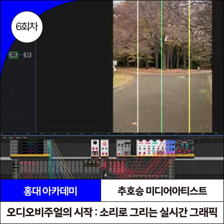 거창한 예술가가 되기 위한 훈련이라기보다, 소리와 빛을 내 방식대로 연결해 보는 개인적인 실험실을 갖는 시간입니다. 가상 악기 VCV Rack과 비주얼 툴 TouchDesigner를 활용해 소리로 이미지를 그리고, 그 이미지의 움직임이 다시 소리를 변화시키는 실시간 오디오 비주얼 시스템을 직접 만들어 봅니다. 특히 평소 비주얼 작업을 주로 해오신 분들이라면, 화면 속 데이터가 즉각적으로 소리가 되어 들리는 경험이 새로운 감각의 전환으로 다가올 수 있을 거예요.