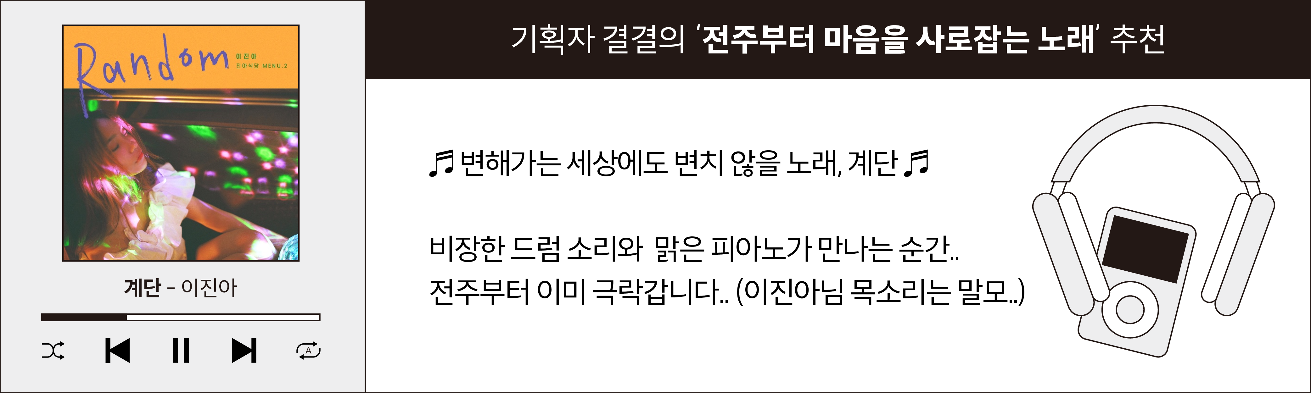 전주만 듣고 마음을 뺏긴 노래가 있나요? 혹은 전주나 간주는 그저 쉬어가는 파트라고 생각하진 않았나요?